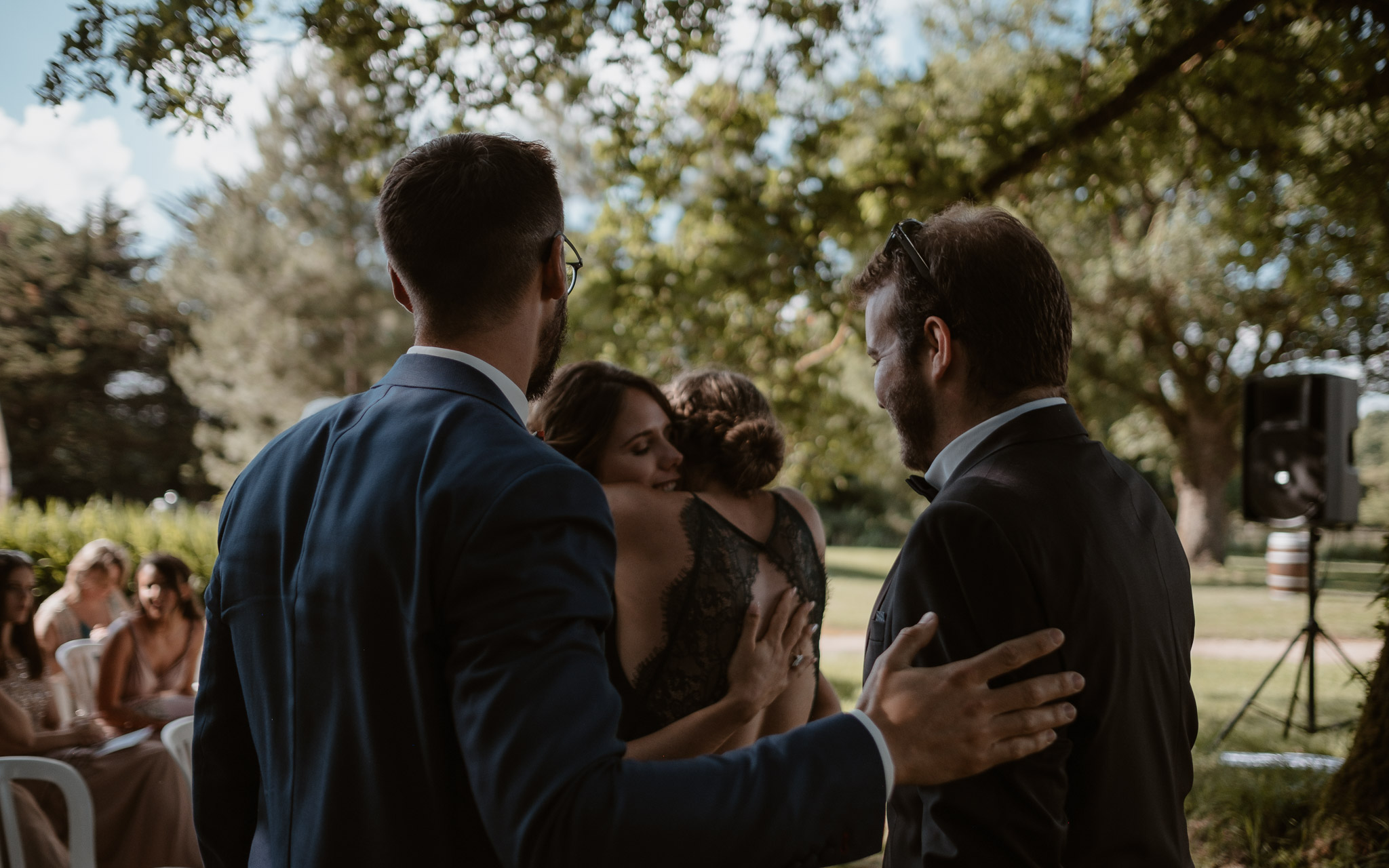 Claire et Antoine ont choisi dans le havre de paix de la Guilbaudière près de Nantes pour leurs préparatifs. Un passage éclair à la mairie centrale de Nantes et nous avons ensuite pris la direction du domaine du Bois d’Andigné pour une magnifique cérémonie laïque ! La soirée réservait son lot de surprises avec un spectacle qui a ravit les invités !