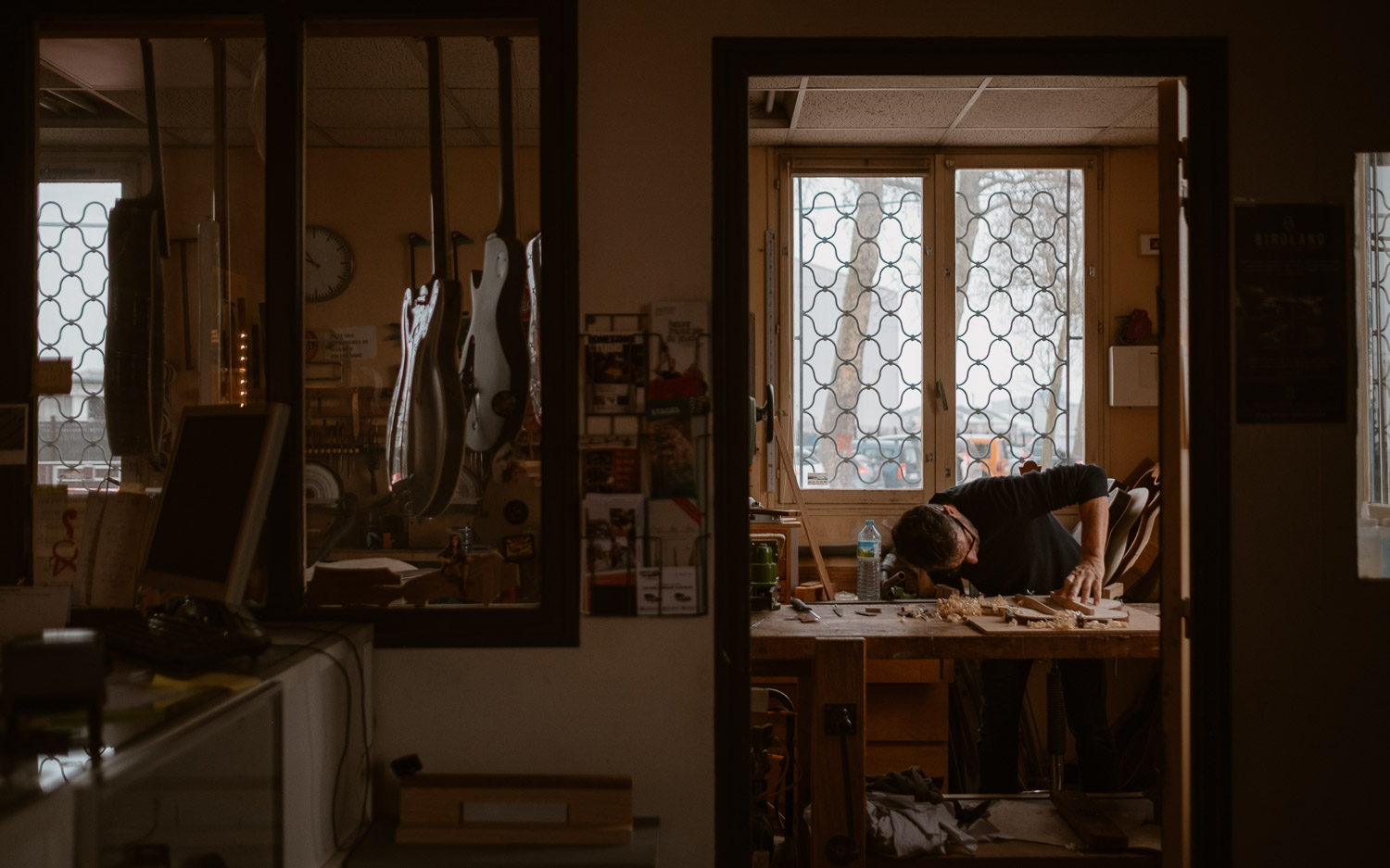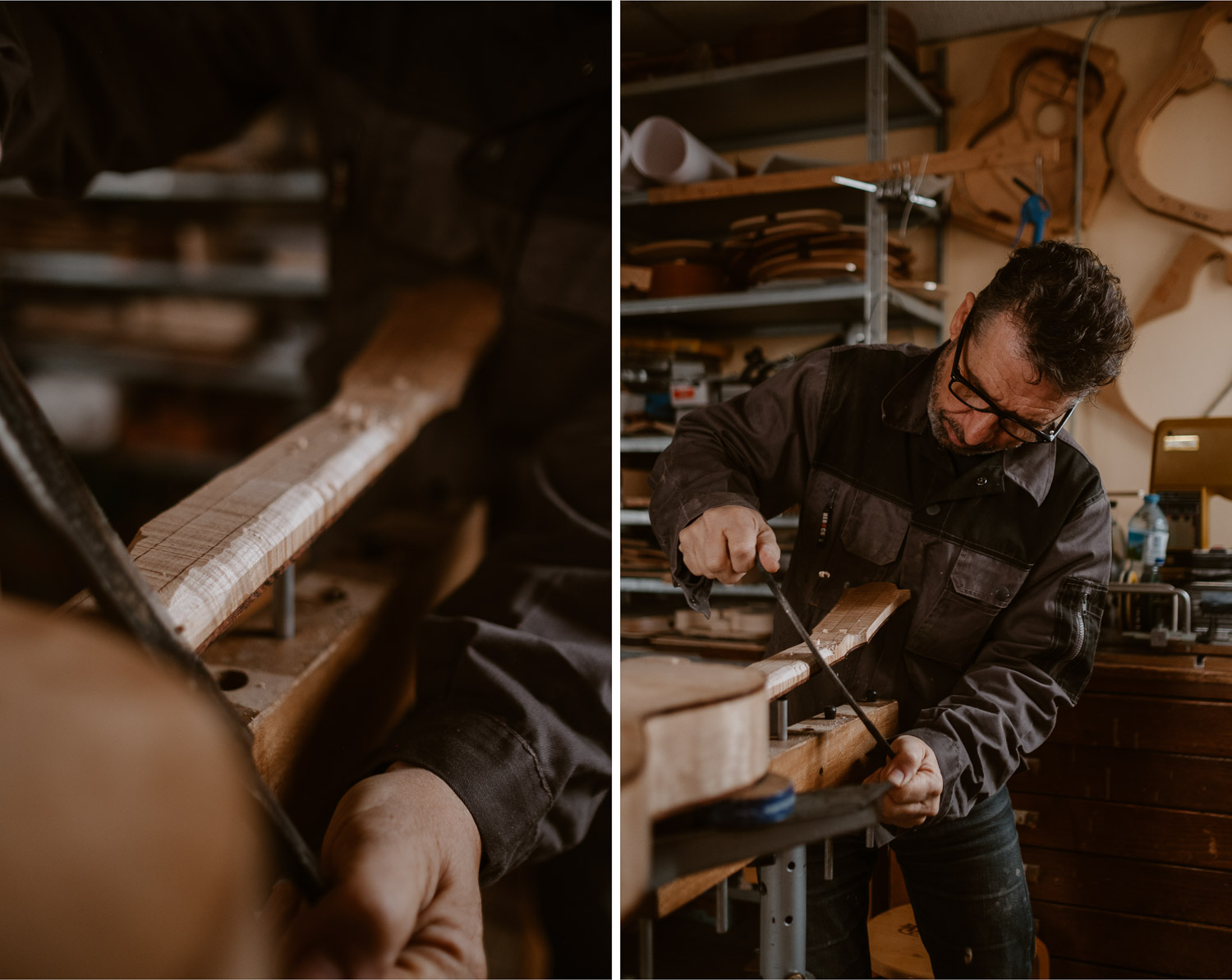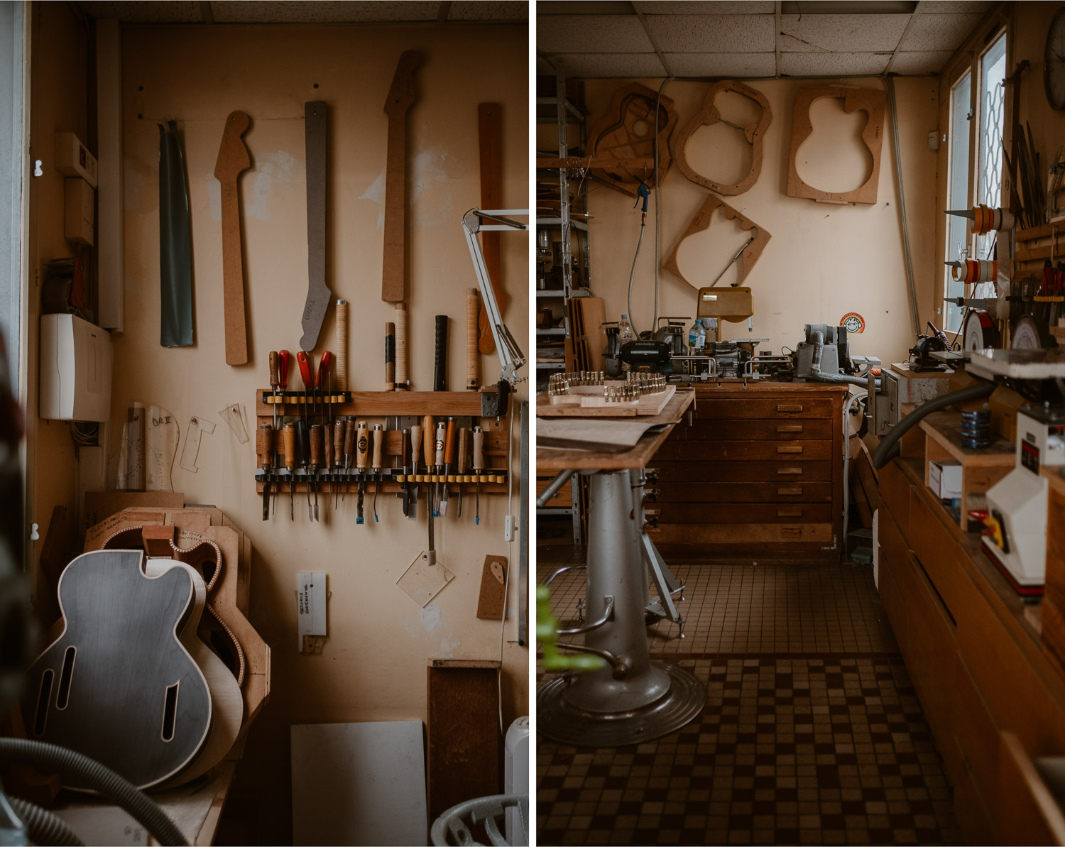 Je vous embarque sur l’Île de Nantes, dans les anciens bureaux du port, au sein de l’univers passionnant de Patrice Blanc. Une formidable rencontre avec ce luthier hors pair qui crée des pièces uniques, fabrique sur mesure, entretient et bichonne depuis plus de 30 ans toutes sortes de guitares de connus et moins connus. Autodidacte artisan & artisan d’art, passionné enthousiaste & partageur, créateur audacieux & perfectionniste, solitaire hypersensible, Patrice c’est tout ça ! C’est dans le silence qu’il préfère officier, créer, écouter ses bois, au sein de milliers de pièces mécaniques, d’essences de bois rares et de centaines d’outils et de machines qu’il confectionne en partie. Patrice Blanc c’est le tour de force d’allier l’âme au visuel : un instrument exceptionnel fait d’audace, de perfection et d’épure. Encore un qui se lève chaque matin en pensant à ce rêve de gamin qu’il a réalisé et qu’il vit chaque jour !